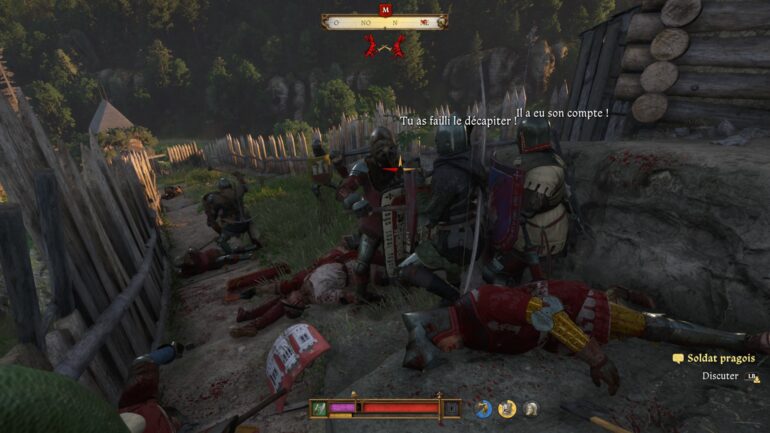 Ce qui est souvent reproché à cette licence, c’est son gameplay exigeant qui requiert un minimum de persévérance, outre le fait de devoir se nourrir, surveiller son sommeil & son état général. Kingdom Come dispose d’un système de combat qui demande aux joueurs une certaine capacité d’adaptation ; on ne maîtrise clairement pas les mécaniques au premier choc des épées. Avec quelques heures de jeux, n’importe qui peut dompter les facettes du combat. Une fois que c’est fait, c’est du bonheur, la joie de pouvoir participer aux nombreuses activités annexes qui s’offrent à vous comme la confection de potions (bien hard parfois), le tir à l’arc en compétitions, les combats à main nue ou en arme et même des courses de chevaux afin de pouvoir récupérer quelques groschen (monnaie du jeu) importante dès les premiers instants que vous foulerez le sol de Trosky. La réputation est également importante, ne pas faire de vagues, éviter les larcins (même si parfois c’est inévitable), respecter les lois de chaque contrée afin d’éviter la prison, ou des punitions comme le pilori. L’époque n’est pas tendre, à vous de trouver le bon équilibre, rendre service & effectuer des tâches pour les habitants restent le meilleur moyen d’évoluer positivement dans Kingdom Come : Deliverance 2.